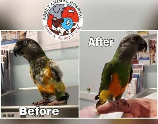 As you see in the before and after pictures of Monkey, he came to us looking really rough.  It’s amazing how far he has come during since he has been with us, from being a pluckier to being fully feathered. Proper care and diet makes a huge difference in the health of a bird.
